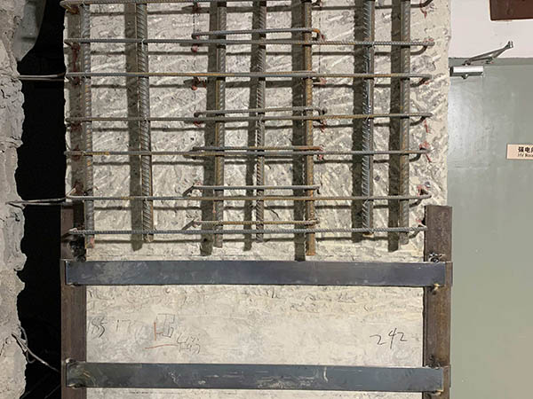 測試時測力計施加于卡具的力應(yīng)符合FC≥FYK(FC:測力計施加的力,N/mm2;FYK:鋼筋的屈服強度,N/mm2)試驗需證明:植筋用的植筋膠強度大于鋼筋的屈服強度,植筋的破壞是鋼筋的屈服破壞,不是膠的粘結(jié)破壞,這表明鋼筋和植筋膠都是合格的。